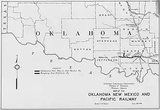 - ^ a b c "Oklahoma, New Mexico and Pacific Railway Company". Railroads of Oklahoma, June 6, 1870-April 1, 1978, pp. 36-38 (accessed on Oklahoma Digital Prairie). Retrieved August 20, 2022.