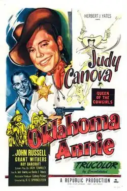 Oklahoma Annie is a 1952 American comedy western film directed by R. G. Springsteen and written by Jack Townley and Charles E. Roberts. The film stars Judy Canova, John Russell, Grant Withers, Roy Barcroft, Emmett Lynn and Frank Ferguson. The film was released on March 24, 1952 by Republic Pictures.[2][3][4]