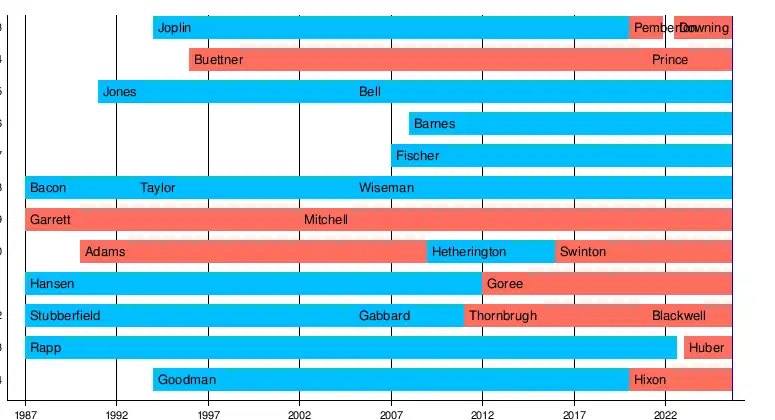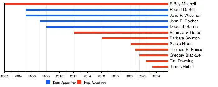 This graphical timeline depicts the length of each current judge's tenure on the Court: