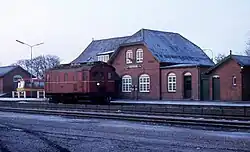 The original and still existing station building from 1903 was built to designs by the Danish architect Heinrich Wenck (1851–1936), known for the numerous railway stations he designed across Denmark in his capacity of head architect of the Danish State Railways.[4]