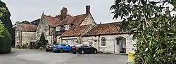 The original part of the house is built of sandstone, partly on a chamfered plinth, the rear wing is in orange-red brick, and the roofs are in pantile with a stone slate verge, coped gables, moulded kneelers, and ball and pedestal finials. It has two storeys and an attic, four bays, two-storey one-bay cross-wings, and rear wings. On the front is a doorway with a fanlight, a coved string course, and moulded eaves. Most of the windows are sashes, and there are two gabled dormers. The outbuildings include a stable block with one storey and an attic and four bays. It contains a segmental-arched opening, doorways and sash windows. Inside, there is an early staircase, the original kitchen fireplace, and several round-arched ovens. The undercroft is vaulted and has a stone bench on the west side, a mullioned window, former fireplace, and blocked tunnel.[3][5]