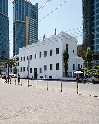 The Old Boma of Dar es Salaam, Tanzania is one of the city's oldest buildings.[1][2] It is located at the crossing of Morogoro Road and Sokoine Drive, facing the harbor and adjacent to the City Hall.[3] It was built in 1866-67 by Majid bin Said, sultan of Zanzibar, close to his palace (now demolished). He also commissioned other buildings in the same area, such as the White Fathers' House.[4] Under German colonial rule it was restored and enlarged. Distinctive features of the building include the zanzibari-style carved wooden door and coral stone walls.
