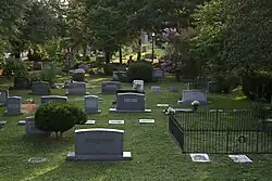 Distinguished persons buried in the cemetery include legendary North Carolina basketball coach Dean Smith;[5] band leader Kay Kyser and his wife, singer Georgia Carroll; playwright Paul Green; novelists Alice Adams and Max Steele; university presidents Frank Porter Graham, Robert Burton House, and William Friday; and CBS newsman Charles Kuralt.