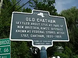 1. ^ Davenport, Arthur (June 15, 1969). "An Uncertain Centennial For Chatham" (payment for complete article). The New York Times. p. XX7. Retrieved May 11, 2009. The original Chatham changed its designation to Old Chatham. [...] The tiny village of Old Chatham, from which the present Chatham appropriated its name...