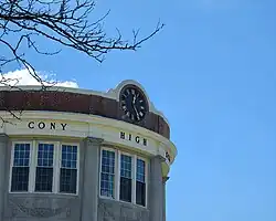 In the 1920s, it was realized that the existing Cony Free High School was unable to accommodate plans for future enrollment. Construction was started on the Old Cony High School in 1926. The building was dedicated on November 12, 1930, but the third story was not finished until 1932.[2]