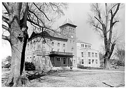 It is a two-acre public square. On the square is the Old East Carroll Parish Courthouse, a two-story building with a three-story side tower with an oculus, built in 1889. The courthouse is the only Romanesque Revival work in the area. Also on the square and included in the district is the new East Carroll Parish Courthouse, built in 1935. It is relatively low, given it is a three-story building.[2][3]