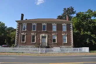 It is dated to about 1765, and is a two-story, five-bay, Georgian style brick building. It features stone quoins and a stone doorway. The building has a fully molded wood cornice with modillions, hipped roof, and four interior end chimneys.[3]