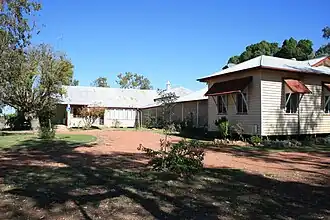 This growth was reflected by several additions to the hospital. A morgue building was added by September 1903.[11] In 1908 tenders were called for addition of a female ward.[12] In May 1913 an additional building was being erected. The purpose of this building is not mentioned in any reports, but matron and nurses' quarters were being furnished in October 1913 and a 1927 newspaper article notes the earlier addition of nurses' quarters to the original hospital.[13][1]