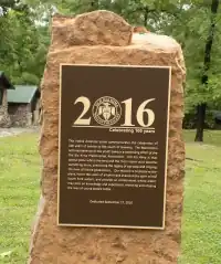 Bolton Smith, an investment banker from Memphis, Tennessee and the first president of the Chickasaw Council, purchased and donated the original 206.28-acre (0.8348 km2) Kia Kima site on April 11, 1916.[2] The property consisted of a bluff overlooking the South Fork Spring River in Sharp County, Arkansas, near Hardy. The original Kamp Kia Kima opened in 1916 and operated (excluding World War II years)[3] as a Boy Scout summer camp until 1963.[4] For the next 33 years the property was in a state of abandonment and ruin until 1996 when the Old Kia Kima Preservation Association was formed with the mission to restore the camp.