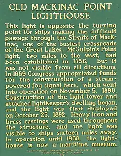 - ^ "Michigan Historical Markers, Old Mackinac Point Light". Archived from the original on July 17, 2014. Retrieved April 6, 2008.