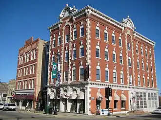 - The Henry Werner building at 327 Main St. was built in 1880, a brick saloon and tailor shop an unusual wide bay window on the second story, with accents in red sandstone against pale brick, and only a partial cornice.[8][2]