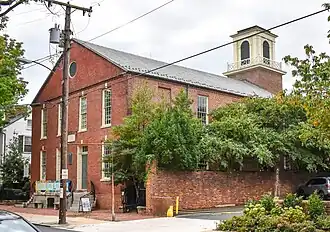 The meeting house was originally built in 1775 in the Early Republic style, but was largely destroyed by fire in 1835. It was rebuilt in 1836, and a bell tower was added in 1843 and granite entrance stairs were installed in 1853. The campus was added to the National Register of Historic Places in 2001.[3][4] The church also lies within the bounds of the Alexandria Historic District.