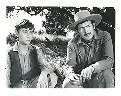 Promotional photo of Tommy Kirk and Fess Parker during filming.