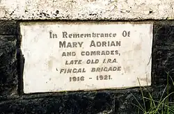 Molly Weston, a heroine of the 1798 rebellion, was born near Oldtown. She fought alongside her three brothers at Tara. A memorial was erected to her memory at Oldtown during the 1798 Bi-Centennial in 1998. "Arrayed in green... mounted on a white horse, [she] rode hither and thither upon the field with drawn sword in hand, rallying the pikemen and leading them in successive charges with the utmost fearlessness" (Patrick Archer, Fingal in 1798). She wore a green riding costume, with gold braid in the manner of a uniform and a green cocked hat with a white plume. She was armed with sword and pistols and was accompanied by her four brothers when she rode into battle. Weston rallied and regrouped the stricken pikemen; she placed herself at their head and led repeated charges against the Reagh Fencibles. "She fired a big gun captured from the Fencibles during the battle, killing eleven of their number. Molly died along with her four brothers at the Battle of Tara. Her side-saddle was recovered from the battlefield.