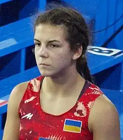 ![]() Oleksandra Khomenets at the 2021 World Wrestling Championships in Oslo, Norway | ||||||||||||||||||||||||||||||||||||||||||||||||||||||||||||