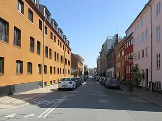 Olfert Fischers Gade is a street in the Nyboder Quarter of central Copenhagen, Denmark and is named after the naval officer Olfert Fischer who commanded the Danish fleet in the Battle of Copenhagen in 1801. It runs from Store Kongensgade in the east to Rigensgade in the west, intersecting the streets Borgergade, Adelgade/Sankt Pauls Plads, Gammelvagt and Kronprinsessegade on the way. The street is closed to through traffic on the west side of Borgergade.