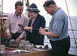 ![]() Aboard the Velero III c. 1940 | |