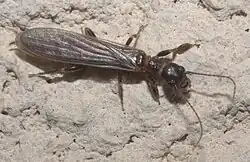 Oligotoma is a genus of webspinners, insects in the order Embioptera, also known as Embiidina.[1] The type species is Oligotoma saundersii and the type locality the Indian subcontinent.[2] The males have wings but the females are flightless. Embiids are recognisable by the enlarged front tarsi, which contain a large number of silk glands that they use to spin the threads they use for building the tubes and galleries in which they live.[3]