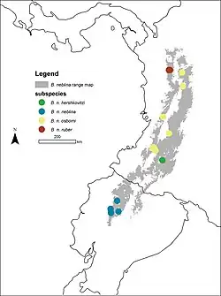 Based on morphological distinctions, four olinguito subspecies have been described: the nominate Bassaricyon neblina neblina, and B. n. osborni, B. n. hershkovitzi, and B. n. ruber.[2] Each of these subspecies, though, were found to have a dental formula characteristic of other members of the family Procyonidae.[17]