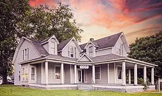The Oliver House is a historic house at 203 West Front Street in Corning, Arkansas. It is a 2+12-story wood-frame L-shaped structure, with a gambrel-roofed main block and a gable-roofed section projecting forward from the right side. A single-story hip-roofed porch extends through the crook of the L and around to the sides, supported by Tuscan columns. The interior retains original woodwork, including two particularly distinguished fireplace mantels. Built c. 1880 and last significantly altered in 1909, it is one of Corning's oldest buildings. It was built by J. W. Harb, and purchased not long afterward by Dr. J. L. Oliver Jr., whose son operated a general store nearby.[2]