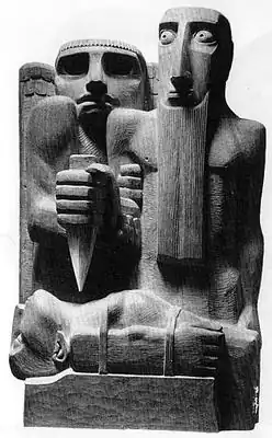 Oliver O'Connor Barrett was born in Eltham, London, England on 17 January 1908. He studied at Fircroft College in England but was largely self-taught as a sculptor.[1] In 1933, Barrett exhibited at the Royal Academy. In 1937-38 he carved a panel, The Temptation of St. Anthony and fifteen keystones for a block of flats, called Viceroy Close, in Edgbaston, Birmingham. The work was designed and executed in the almost cartoonish manner that was to become one of the several styles that Barrett was comfortable in.