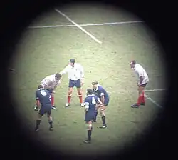 A French championship Title private following a refereeing error with Grenoble 1993 He has played for the FC Grenoble and despite overpowering pack called the Mammoths of Grenoble[3] his club tilts on the score of 14–11.[4] A try on his part is also refused in Grenoble[5] and the decisive try by Gary Whetton was awarded by the referee, Daniel Salles, when in fact the defender Franck Hueber from Grenoble touched down the ball first in his try zone. This error gave the title to Castres.[6] Salles admitted the error 13 years later.[7][8][9] Jacques Fouroux the coach of FC Grenoble in conflict with the Federation and who was already suspicious before the match of the referee[10] cry out conspiracy.[11]