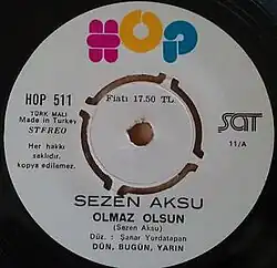 "Olmaz Olsun" is Turkish singer Sezen Aksu's third single, released in 1976. It reached number 1 on the charts.[1]