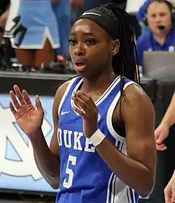 During the 2023–24 season, in her freshman year, she appeared in all 34 games, and averaged 9.7 points and a team-leading 6.1 rebounds per game while coming off the bench. She made her collegiate debut on November 6, 2023, in a game against Richmond, and recorded 22 points, 12 rebounds, three steals and two assists in 25 minutes. She became the first freshman since 2014, and the seventh Blue Devil all-time, to post a double-double in their first career game.[4] On January 25, 2024, in a game against Florida State, she recorded a career-high 13 rebounds.[5] Following the season she was named the Atlantic Coast Conference (ACC) Sixth Player of the Year, and named to the All-ACC Freshman Team. She became the first player in program history to receive the award.[6][7]