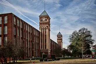 Olympia Mill, also known as Pacific Mill, is a historic textile mill complex located at Columbia, South Carolina. It was built in 1899, and consists of a four-story, red brick, rectangular shaped, main mill building connected to a one and two-story red brick power plant. The main building is in the Romanesque Revival style and features terra cotta detailing, large segmental arched window openings, and twin pyramidal roofed towers. The complex also includes: a one-story brick power plant auxiliary building, a one-story storage building, and two small brick one-story gatehouses.[2][3]