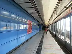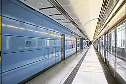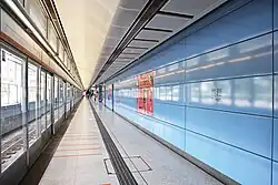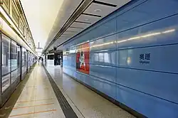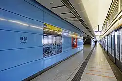 Olympic is a station on the Tung Chung line of Hong Kong's MTR. The livery is dodger blue.