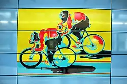 The station was originally named Tai Kok Tsui in proposals outlined by the government in the Airport Core Programme during the 1990s. In 1996, however, when Lee Lai-shan won the first ever Olympic gold medal of Hong Kong in windsurfing at the Atlanta 1996 Summer Olympics and two Hong Kong sportsmen, Cheung Yiu-cheung and Chiu Chung-lun, also won Gold medals in the Paralympic Games of the same year, the (then-under construction) station was renamed Olympic on 16 December 1996, paying tribute to those achievements of Hong Kong athletes. The station is decorated with pictures of the 1996 Summer Olympics and is named after the Olympic Games.