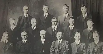 The society's first class of members were initiated at Washington and Lee in May 1915.[2] In 1916, Omicron Delta Kappa became a national society with the establishment of Beta at Johns Hopkins University and Gamma at the University of Pennsylvania.[1] It held its first national convention in 1920 at Johns Hopkins.[1] By 1927, it has 17 circles or chapters with 1,500 members.[1] It had grown to 106 circles and 38,660 initiates in 1963.[3]