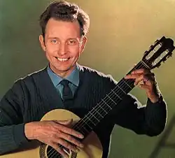 The singer Gunnar Turesson noted in his 1976 book Visor och skaldeminnen that Andersson had emphasised that "Omkring tiggarn från Luossa" should "be read and not sung".[11] Despite this, the poem has repeatedly been set to music and recorded as a song. In 1938, the composer Josef Jonsson set it as a "melodrama for orchestra".[12] The poem was set to music by the Swedish singer and musician Gunde Johansson in 1954, re-released on his 1963 album Dan Anderssons Dikter Och Visor.[13][14] From November 1972, the version by the Hootenanny Singers reached second place in the Swedish Svensktoppen charts, and remained listed there for 52 weeks.[15][16][17] The ABBA musician Björn Ulvaeus, who had been in the Hootenanny Singers, stated that the song had probably been their biggest hit, coming to his mind when his bandmate Hansi Schwartz died.[18]