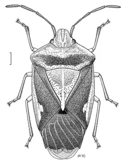 The forest shield bug (Oncacontias vittatus) is a species of shield bugs endemic to New Zealand. Forest shield bug nymphs prefer feeding on grasses, while adults will eat a variety of New Zealand plants including "hard-leaved" plants like rimu. O. vittatus was one of the first insects from New Zealand to be described by a European scientist.[2]