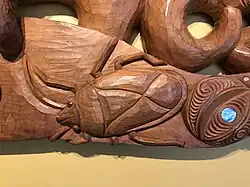 Oncacontias vittatus carved on Maori pare at the New Zealand Arthropod Collection at Landcare Research, Auckland