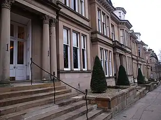 - ^ Historic Environment Scotland. "1–5 (INCLUSIVE NOS) DEVONSHIRE GARDENS, WITH BOUNDARY WALLS AND GATEPIERS, GREAT WESTERN ROAD (Category B Listed Building LB32495)". Retrieved 20 March 2019.