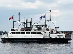 The only car ferry operated by the City of Toronto (all others are owned by Ports Toronto) was built in Owen Sound, Ontario by Russel Brothers[1] and commissioned in 1963 and carries both passengers (220) and vehicles (10 cars or 8 trucks). The latter is for City-owned vehicles that need to access the island.[2]