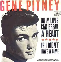 "Only Love Can Break a Heart" is a popular song from 1962, performed by the American singer-songwriter Gene Pitney. The song was written by Hal David (words) and Burt Bacharach (music) and appears on Pitney's second album Only Love Can Break a Heart.