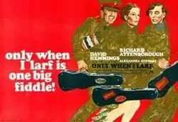 Only When I Larf is a 1968 British comedy crime drama, directed by Basil Dearden and starring Richard Attenborough, David Hemmings, and Alexandra Stewart.[1][2] It was adapted from the 1968 novel Only When I Larf by Len Deighton, and features Attenborough as an ex-brigadier con man in a variety of guises.[2]