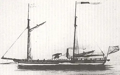 - ^ Not to be confused with the schooner, Ontario, built in 1809,[5] or the gunboat USS Ontario, that fought in the War of 1812, both of which operated in the Great Lakes.[6]