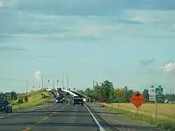 Due to the numerous road disconnections that would take place as a result of the Welland Bypass, a new highway was proposed to link Welland with Port Colborne.[4] One of the severed highways was Highway 58, which then followed Canal Bank Street south from Welland.[10] In late 1970, the Department of Highways tendered contracts for the construction of the new highway on the east side of the bypass. Construction began from the north, reaching as far south as Ramey Road.[11][6]