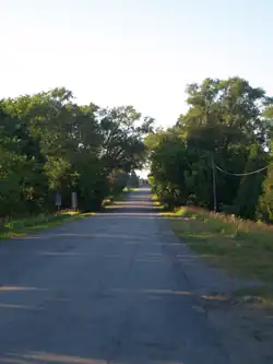Through Etobicoke, it encountered mostly industrial surroundings, meeting Dixon Road at a cloverleaf interchange near the Toronto Congress Centre, then crossing (but not interchanging with) Highway 409. Highway 27 followed a mostly straight route throughout its length, as it passed through the suburb of Rexdale, then north of Kleinburg, with the vast majority of the highway being surrounded by rural farmland. Within Etobicoke, Highway 27 travelled along the 3rd Concession,[5] and in York Region followed the 9th Concession of Vaughan and King Township; both being approximately 16 km west of Yonge Street. It passed along the western edge of suburban sprawl in Vaughan, near the community of Woodbridge. South of Kleinburg, the highway dipped into the Humber River valley, connecting with Islington Avenue. North of the valley, it continued through King Township into the Oak Ridges Moraine, dividing the village of Nobleton and entering Schomberg immediately south of Highway 9, north of which the highway entered Simcoe County.[6][7]