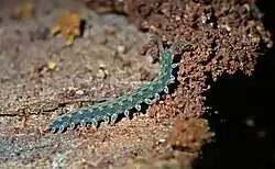 Ooperipatellus viridimaculatus is a species of velvet worm in the family Peripatopsidae.[1][2] This velvet worm is found in New Zealand.[3] Like all velvet worms in the genus Ooperipatellus, this species is oviparous, and like most species in this genus, this velvet worm features 14 pairs of legs.[3][4][5][6] The species name refers to the viridian color of the spots that form a distinctive pattern on the back of this velvet worm.[7][6][5][3]