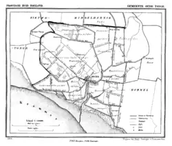 The former municipality of Oostflakkee was formed by the amalgamation of the former municipalities of Den Bommel, Ooltgensplaat, and Oude Tonge in 1966. It consisted of the communities of Achthuizen, Langstraat, Den Bommel (with Zuidzijde), Ooltgensplaat, Oude-Tonge, and Zuidzijde.