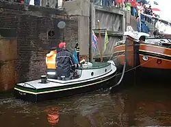 The skipper of the barge was commonly also the owner of the opduwer so barge and tugboat formed a working pair. The barge was sometimes towed but most commonly pushed by the opduwer. The word opduwer literally translates to 'on-pusher' in English. When used as a pusher the opduwer was lashed to the stern of the barge and often controlled from the barge using a string or the boat hook. The opduwer offered additional advantages to the skipper as it could be used as a handy motorboat for various tasks and there was no noise or vibration from the engine in the barge itself.