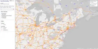 ![]() OpenRailwayMap section of northeastern US and southeastern Canada | |