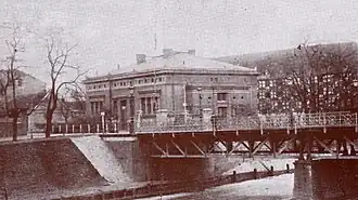 The history of the theatre in Bydgoszcz dates back to the 17th century, when was built a special theatre hall in the city Jesuit College, able to accommodate approximately 300 people.[2] In the 19th century, operas and operettas were played in the Prussian Municipal Theatre; from 1896 to 1920, opera companies from Gdańsk, Poznań or Rostock performed in Bydgoszcz. In the years 1920–1939, a cultural institution run by the German minority called Deutsche Bühne (German scene) was located in the backyard of 66/68 Gdanska. It was a professional theatre, which displayed opera ensembles and orchestra performances based on the local Bydgoszcz Conservatoire located at 9 Mickiewicz Alley. Its popularity matched Municipal Theatre. Deutsche Bühne staged operas, operettas, musicals and vaudeville, hosting German companies (Berlin, Hamburg, Königsberg). On 3 May 1930, to celebrate the 400th anniversary of Jan Kochanowski's birth, the theatre premiered "The Dismissal of the Greek Envoys" (Polish: Odprawa posłów greckich), as a tribute to the Polish community. After 1933, its repertoire followed the cultural Nazi propaganda diktats.[2]