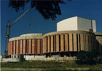 Although works were expected to end in 1982, the economic crisis of the 1980s reduced severely state funds allocated for culture, interrupting the construction. Building became a symbol of "eternal investments" and few people believed in its completion. It is only in 1985, thanks to an increased effort of provincial administrative authorities and cultural lobbies, that the continuation of the construction was insured through the National Culture Development Fund. In 1986, former military warehouses and Headquarters Garrison were at last demolished, getting the work accelerated. Between 1990 and 1994 the main body of the edifice housing the auditorium and the main stage was glazed, and the work moved to dressing rooms and rehearsal rooms, all of which was carried out by a specialized Company, "Teatr" from Warsaw.[11] With the end of communist era, the Fund for the Development of Culture was liquidated, putting another threat to postpone the completion of the building. Construction was then focusing on the third circle, planned to host offices (TVP3 Bydgoszcz), a convention center and restaurants. Around this date, initiative was taken to use the raw building to organize the first Bydgoszcz Opera Festival: main points were to draw attention of the public and decision makers on this important project and to raise funds for its achievement.[8]