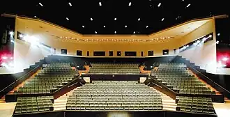 The first Bydgoszcz Opera Festival took place from 17 to 30 April 1994, in the harsh surroundings of the building. The second half of 1990s brought a major positive change in the socio-political climate, helping out with investment, mainly from the provincial authorities. The construction of the Opera Nova in Bydgoszcz gained modern architectural solutions, new technologies, materials and theatrical capacities.[11] The final stage of the investment occurred in the years 2002 to 2008: government of Kuyavian-Pomeranian Voivodeship decided to change the function of the third circle (originally, the area planned for production and decorations storage), so as to create a large convention center, where could be organized symposiums, meetings and congresses. Rationale behind such a decision was money related since the convention center approximately cost 20 million zł against 60 million zł for the initial project.[11] The building officially started operating on 21 October 2006, with a gala celebrating the 50th anniversary of the Opera activity in Bydgoszcz. Construction of Bydgoszcz opera house lasted 34 years and 5 months and is considered one of the longest building projects for a theatre in post-war Poland.[11] The Lublin Musical theatre, however, is second to none in this contest, since its project started in 1974 and has only been completed on 22 November 2015.