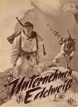 Operation Edelweiss (German: Unternehmen Edelweiß) is a 1954 West German war film directed by Heinz Paul and starring Joachim Mock, Albert Hehn and Wolf Petersen.[1] It was shot at the Göttingen Studios and on location in Switzerland. The film's sets were designed by the art directors Hans Kuhnert and Theo Zwierski.